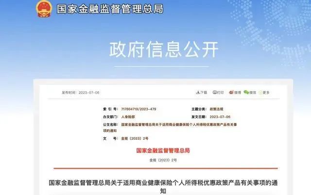 7月6日,國家金融監(jiān)督管理總局發(fā)布《關(guān)于適用商業(yè)健康保險個人所得稅優(yōu)惠政策產(chǎn)品有關(guān)事項(xiàng)的通知》;